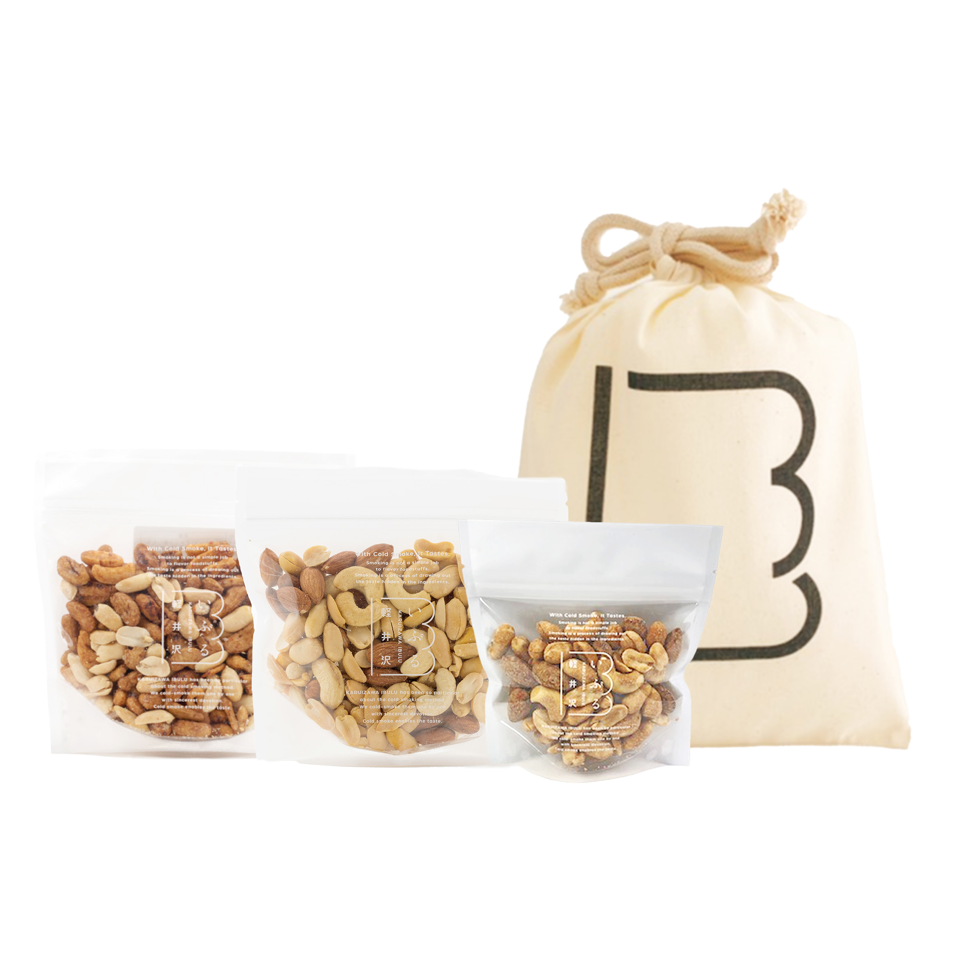 定番で人気のナッツと、あられに燻製しょうゆをたっぷり染み込ませ、燻製ピーナッツとあわせた柿の種のセットです。